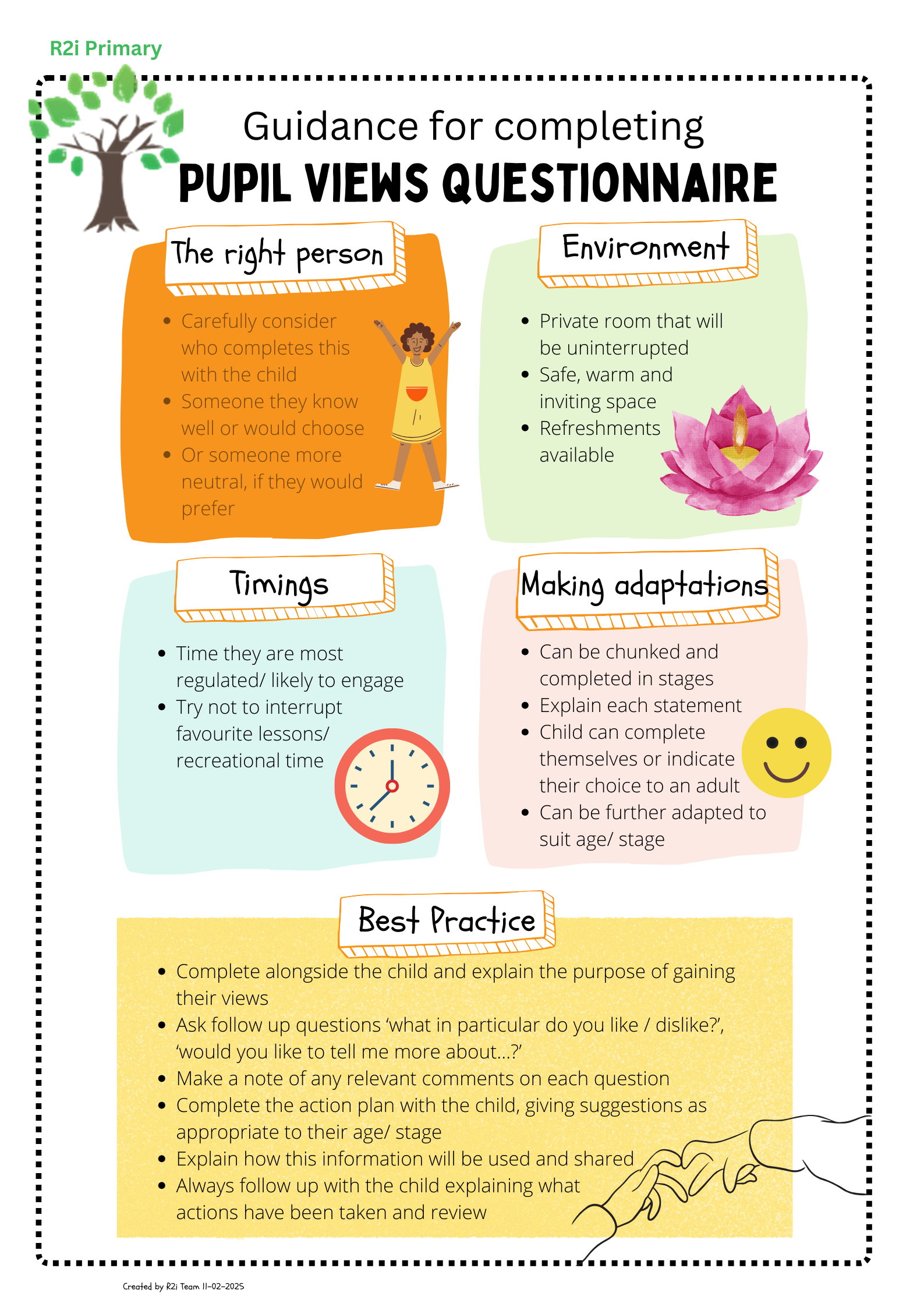The Family Views Questionnaire can be used to support a shared understanding between home and school. Guidance for using this resource can be found here.